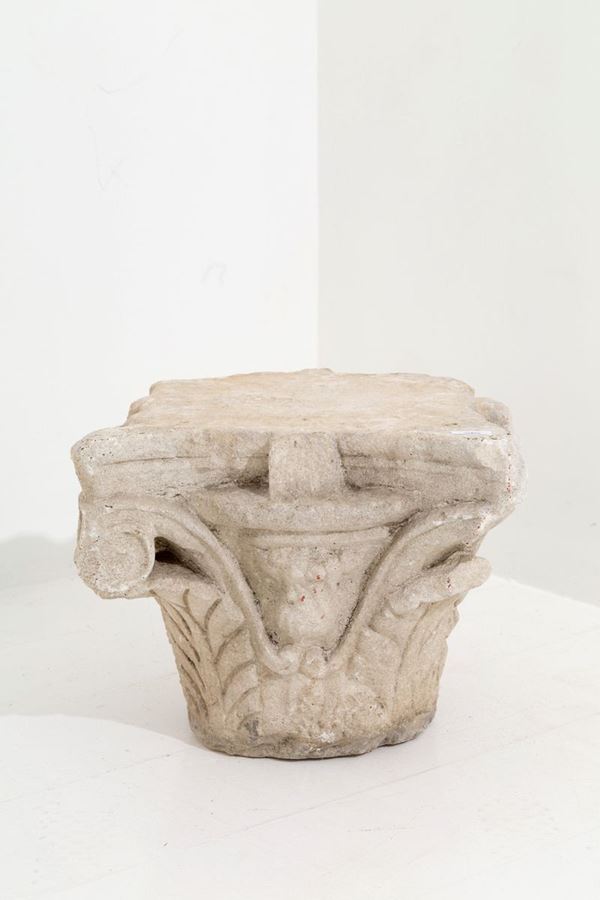 Capitello in pietra scolpita. XVI secolo. Difetti e mancanze....