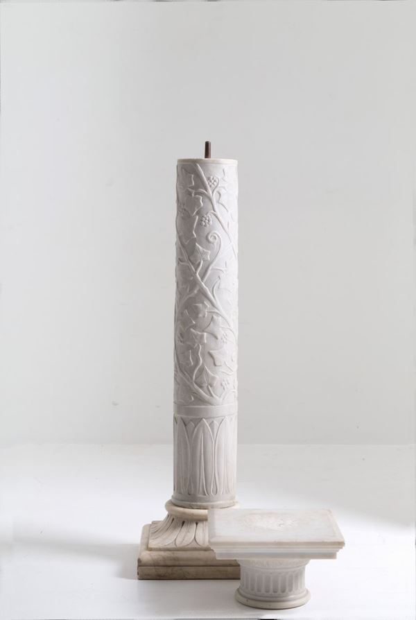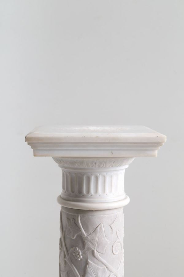 Colonna in marmo bianco di Carrara decorata con tralci d'uva scolpiti. Inizi XX...
