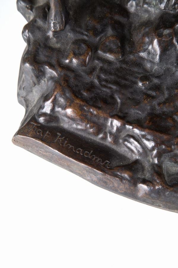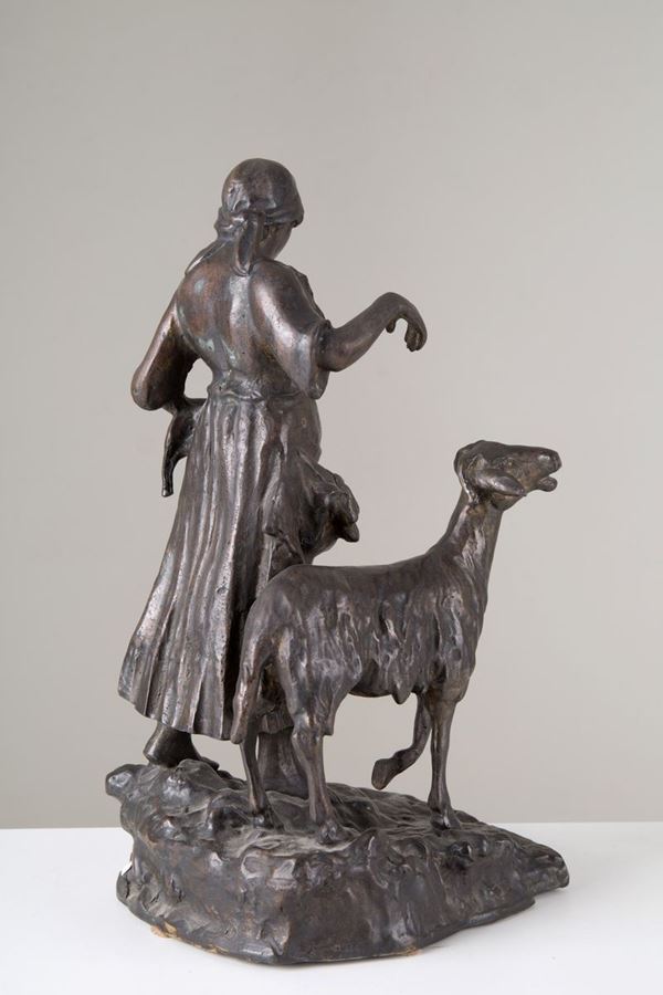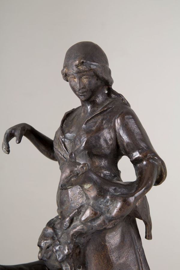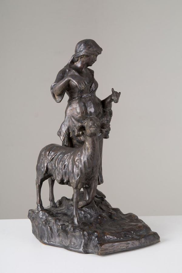 Scultura in bronzo raff. ''CONTADINA CON CAPRE''. Firmata TAP KINADMR. Inizi XX...