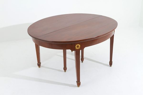 Tavolo ovale allungabile in legno di mogano con gambe rastremate. Francia. XIX ...