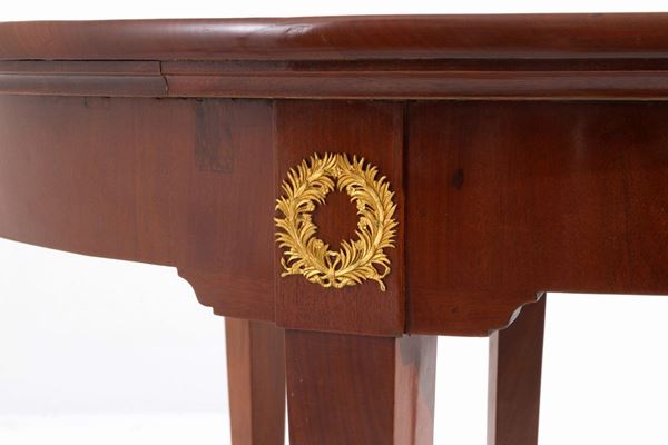 Tavolo ovale allungabile in legno di mogano con gambe rastremate. Francia. XIX secolo.