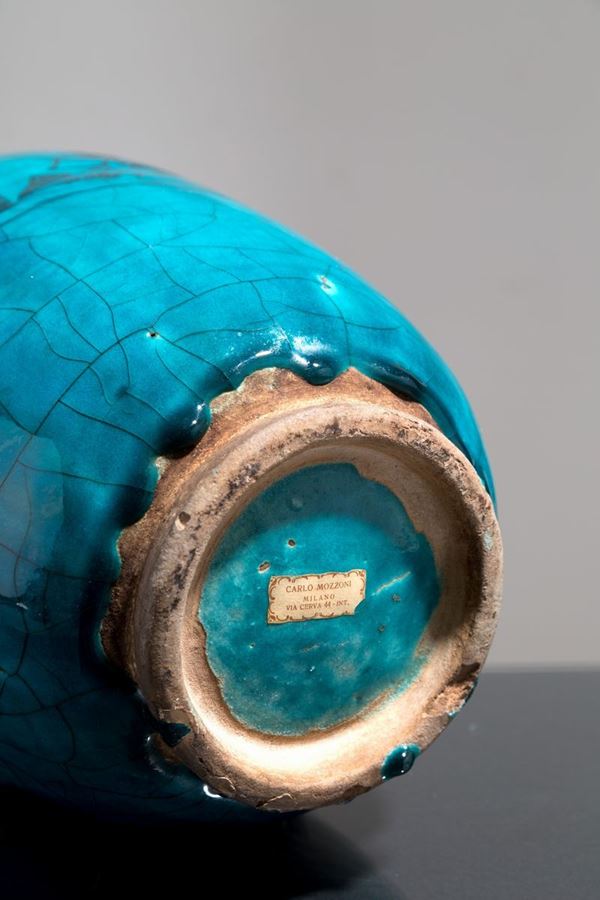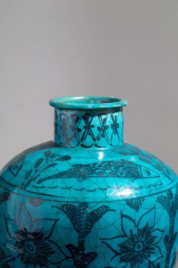 Vaso in maiolica verde fantasia. Nordafrica. XVII secolo.
