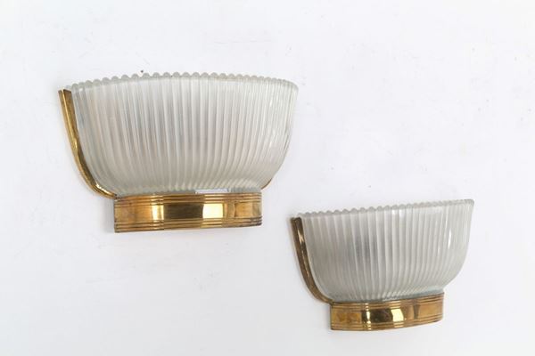 Coppia di applique in vetro di Murano e ottone. Produzione SEGUSO. Anni '50...