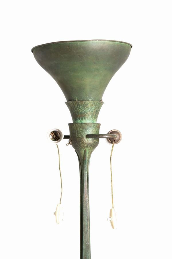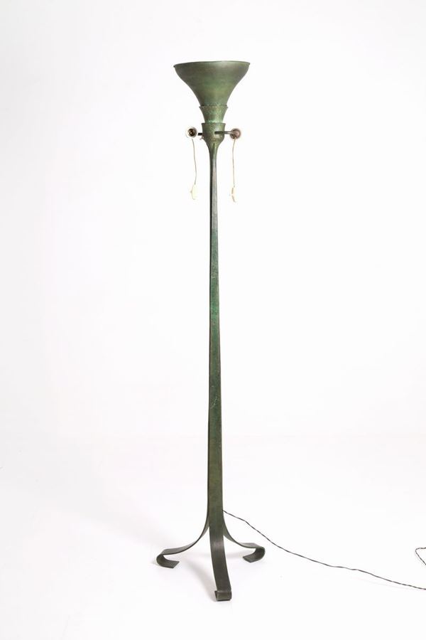 PIER LUIGI COLLI (Torino, 1895-1968). Lampada tre luci in ferro dipinto con par...
