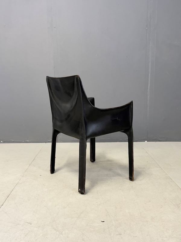 Armchair in black leather. CASSINA production. 60's. Signs of wear. Seat height cm. 43 approx.