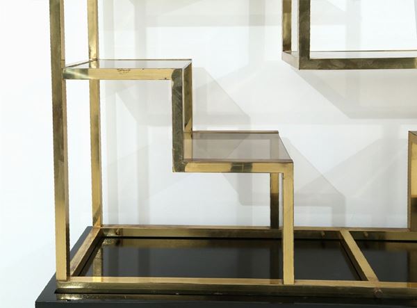 Bookcase in brass and glass. 70's.
