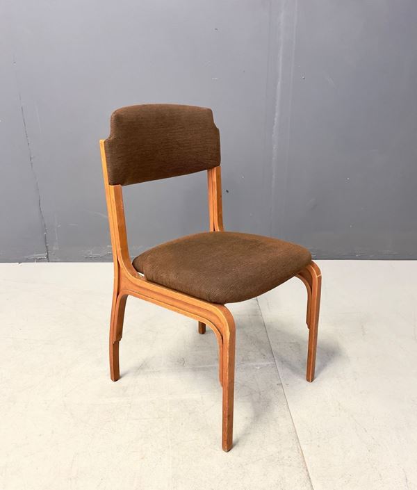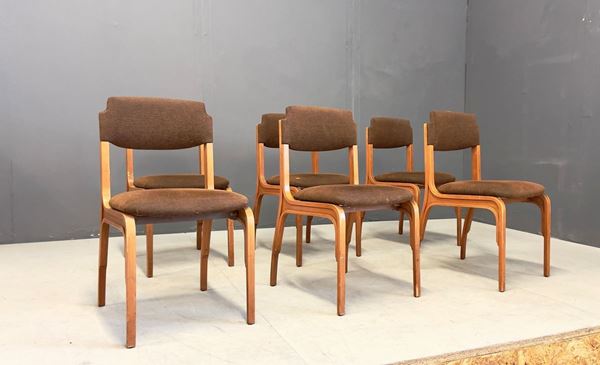 Six chairs with wooden structure, seat and back upholstered in fabric. Manufacturer & nbsp; CANTIERI CARUGATI. With manufacturer's label. 60's.