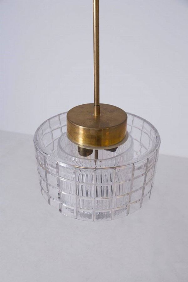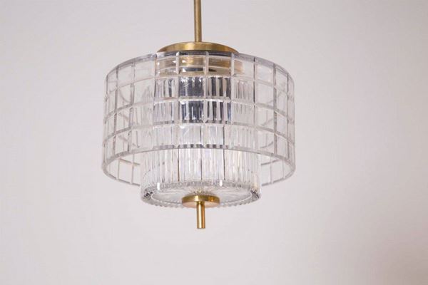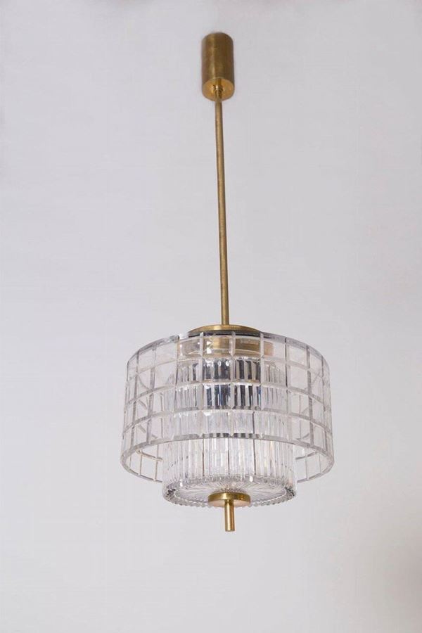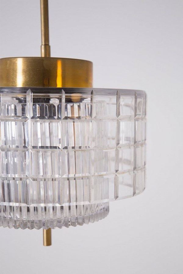 Chandelier in brass and Bohemian crystal. Italian manufacture. 60's.