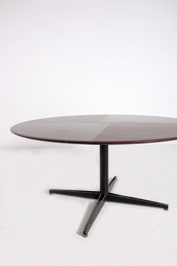 Coffee table in wood and iron. 1950s. Slight flaws.