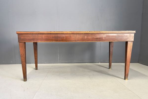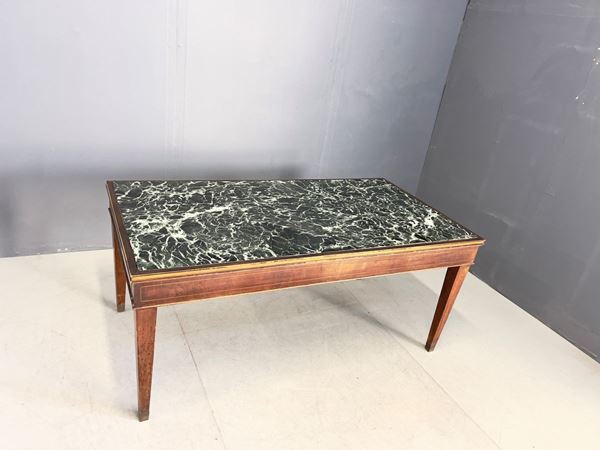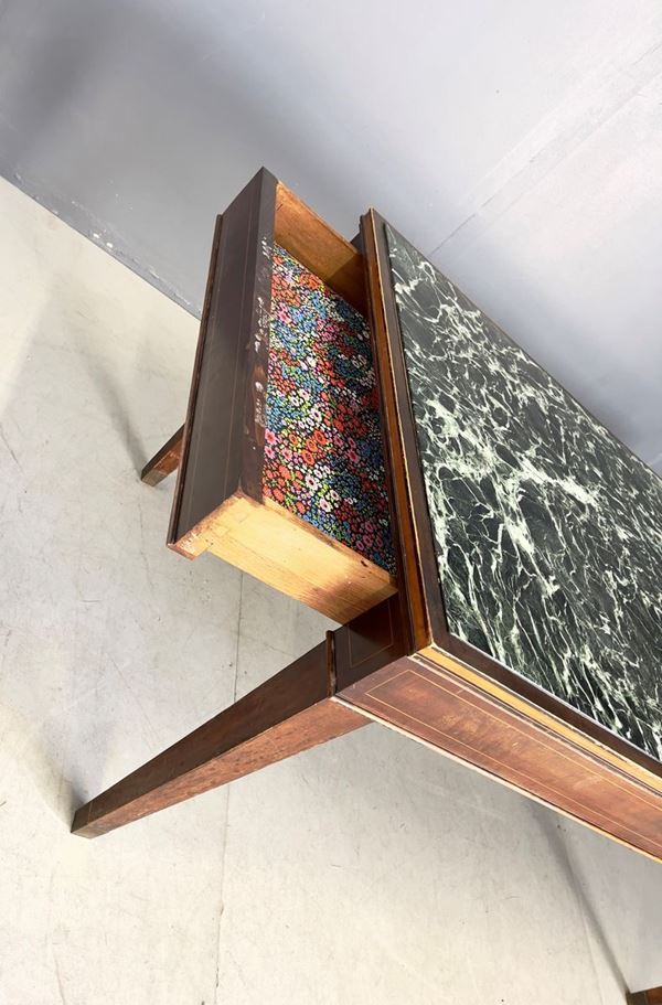 Wooden dining table with marble top. 1950s. Signs of wear and defects.