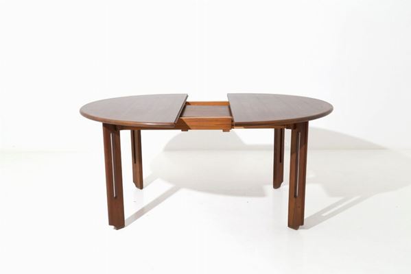 Extendable table in noble wood. ROSSI DI ALBIZZATE production. 70's.