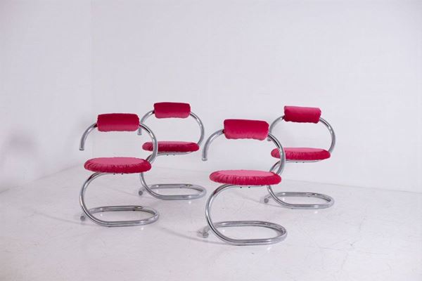 Four Cobra chairs in chromed metal tubing. 70's. Restorations.