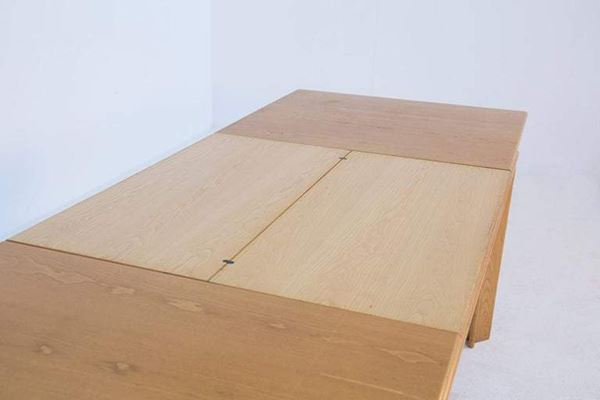 Monk extendable table in wood. CASSINA production. 60's. Published in C. and P. Fiell, 1000 Lights, vol. II, Taschen, 2005, p. 46.