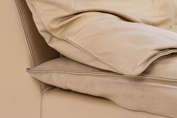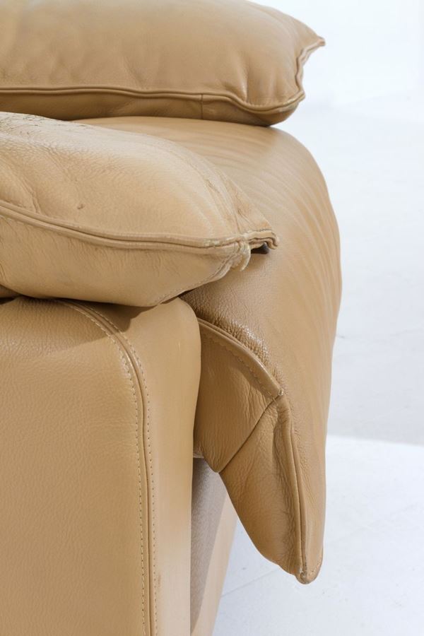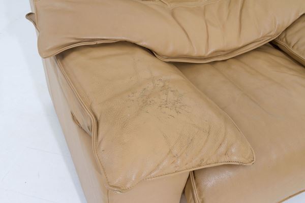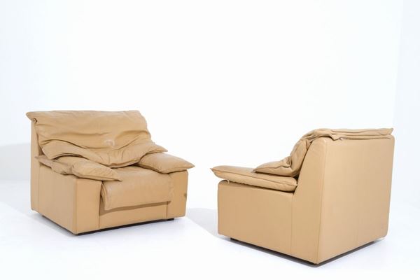 Pair of armchairs in camel-colored leather. Italian manufacture. 70's. Original condition.