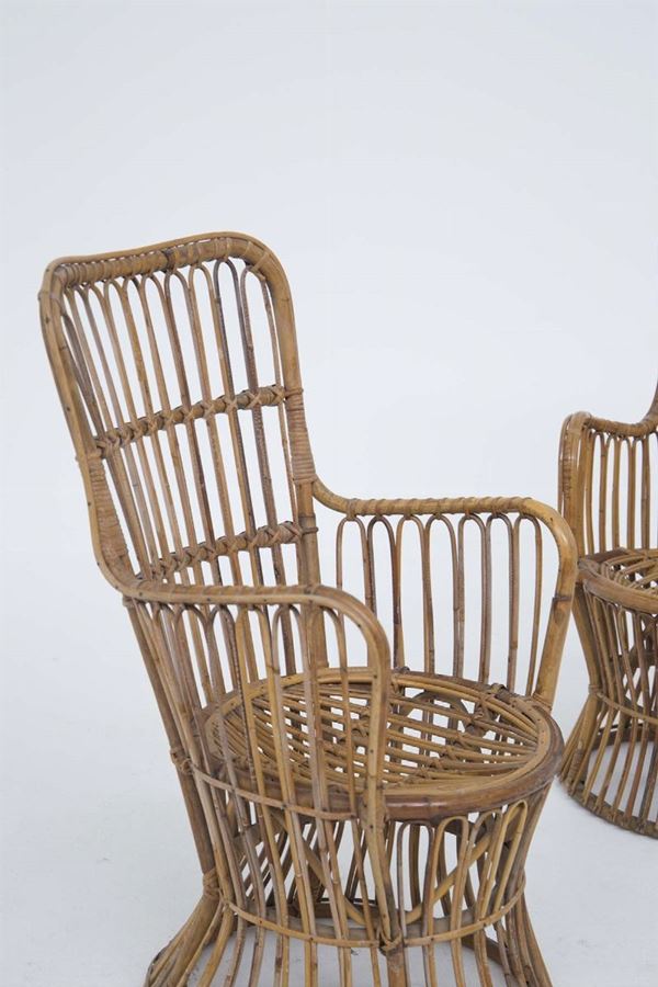 Pair of rattan armchairs. Italian manufacture. 60's.