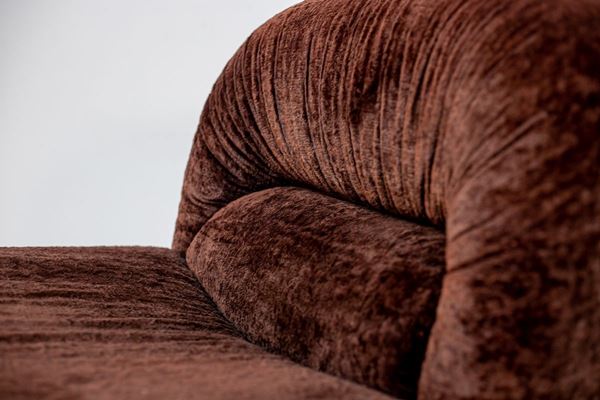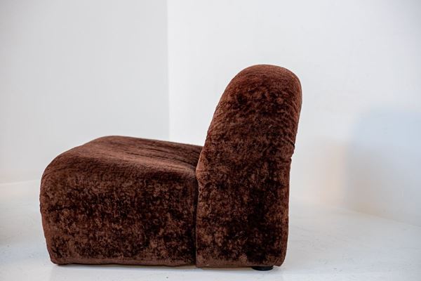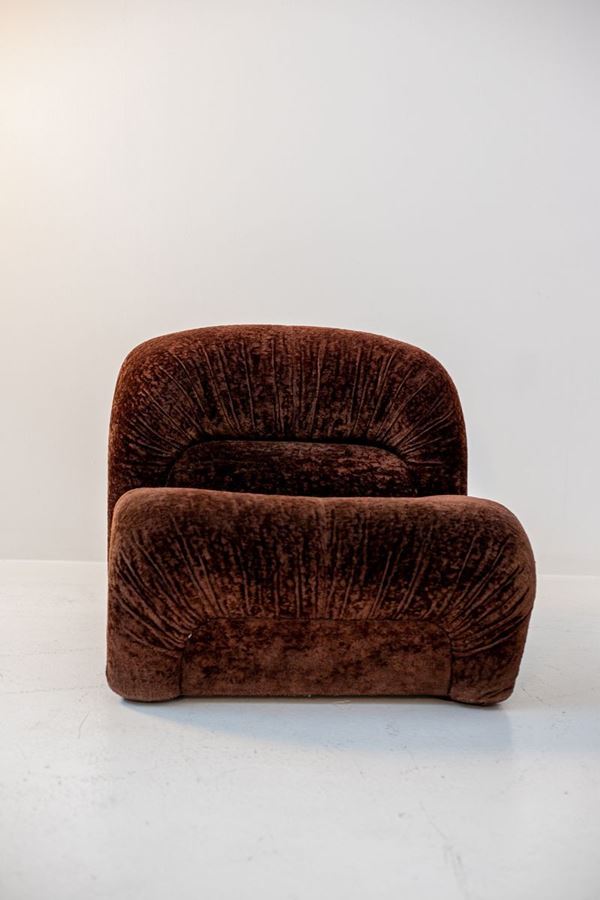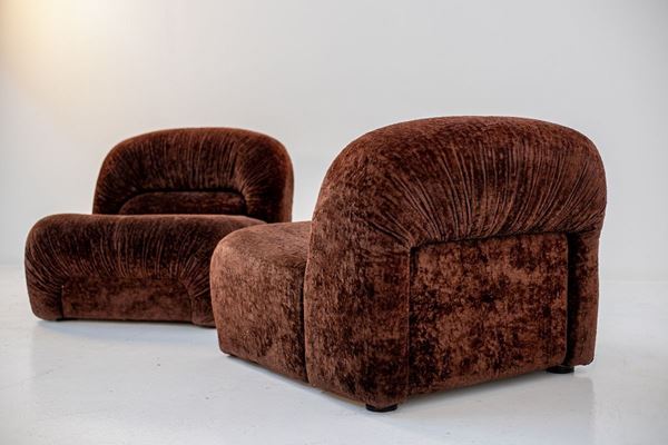 Pair of Space Age armchairs in original brown velvet. Italian manufacture. 70's. Signs of wear. Seat height cm. 39 approx.