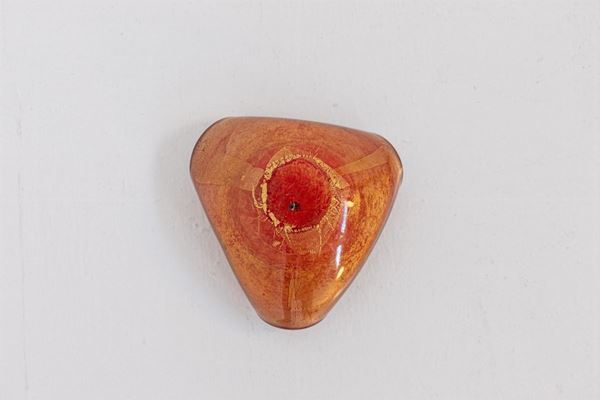 Triangular shaped storage tray in orange, gold and white Murano glass. Production BAROVIER & TOSO (Attr.). 60's.
