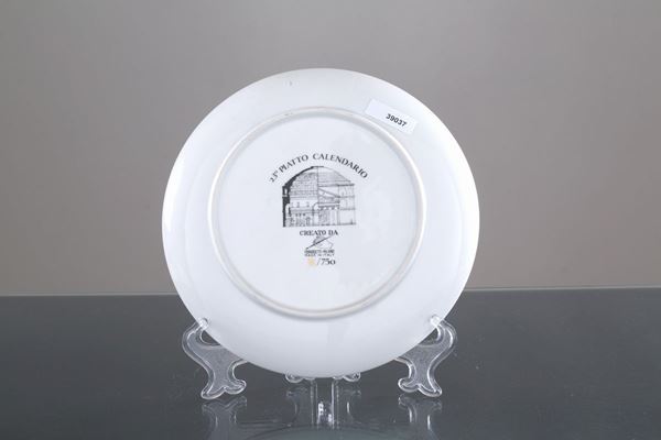 Porcelain plate, Calendar series, year 1990. Specimen 32/750. FORNASETTI production, Milan.