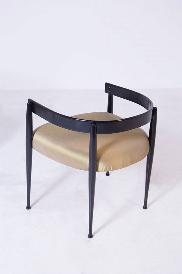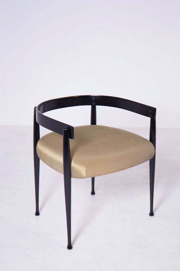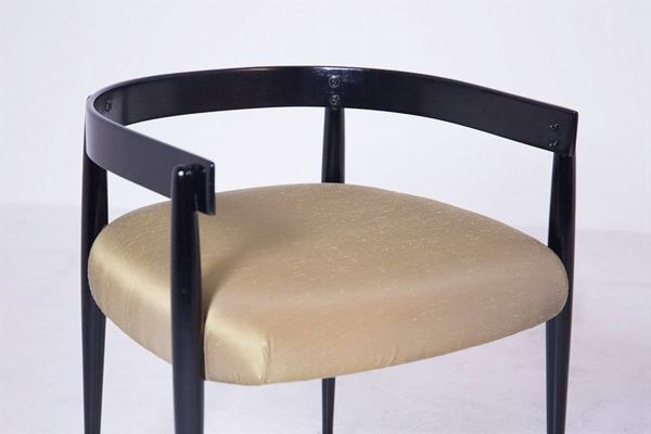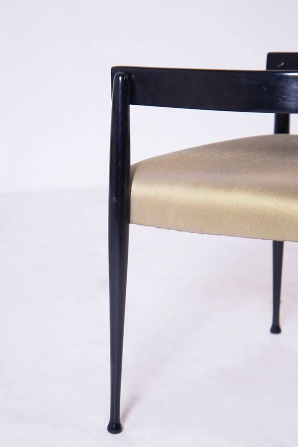 Pair of armchairs in black and silk lacquered wood. 1950s. Restored and reupholstered.