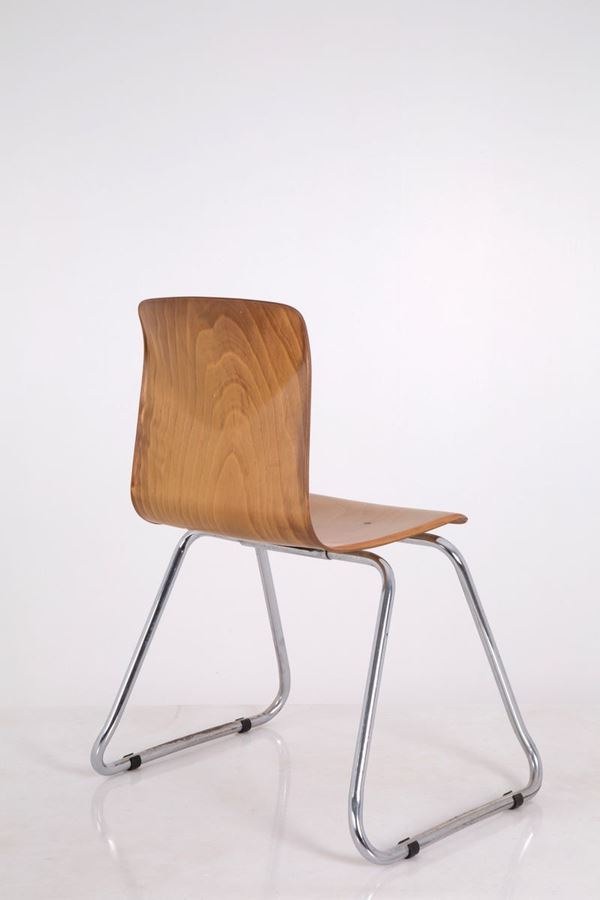 Six chairs with metal structure and light wood seat. PAGHOLTZ FLEET production. 60's.