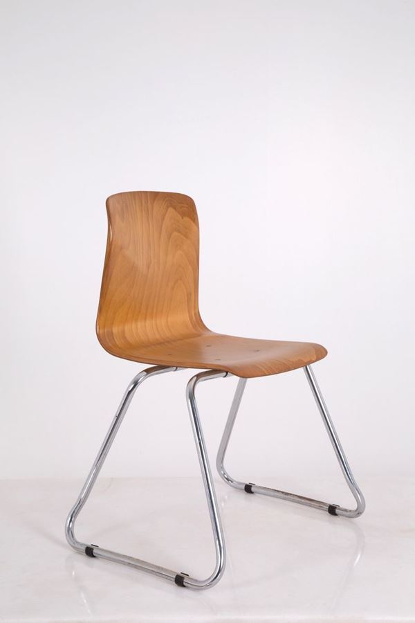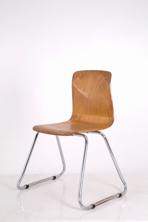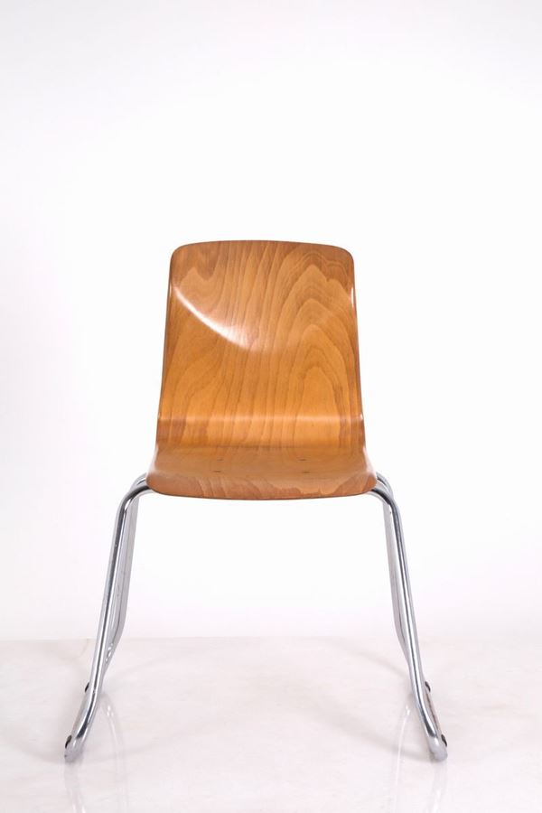 Six chairs with metal structure and light wood seat. PAGHOLTZ FLEET production. 60's.
