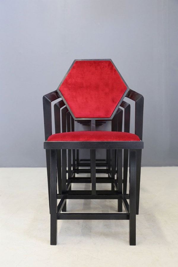 Six Midway 1 chairs in wood. Italian manufacture. 1980s.