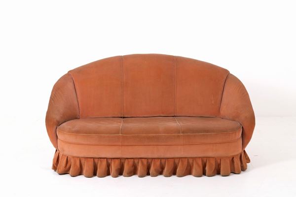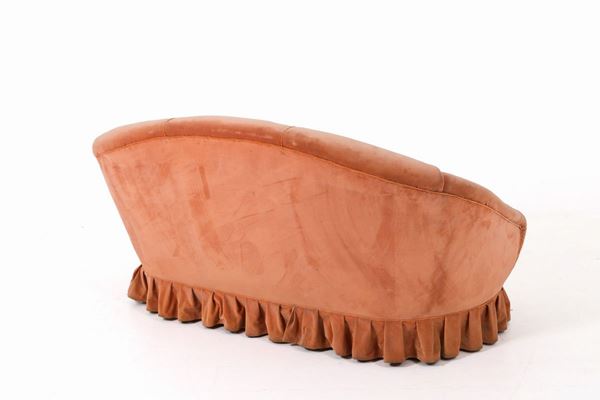 Velvet sofa with wooden feet and original fabric. 1950s. Published in L. Falconi, Gio Ponti. Interiors, objects, drawings (1920-1976), p. 112. Defects.
