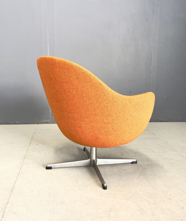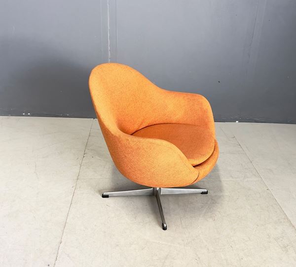 Space Age armchair in chromed metal and upholstered fabric. 70's. Defects. Seat height cm. 38 approx.
