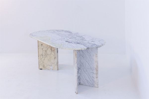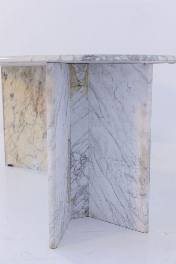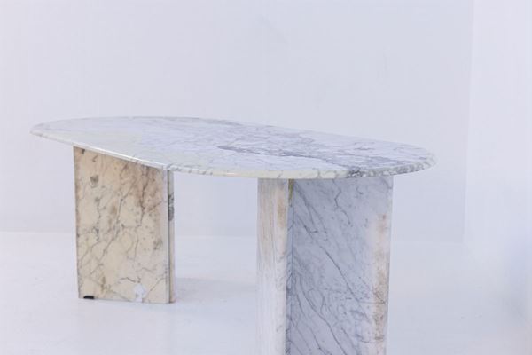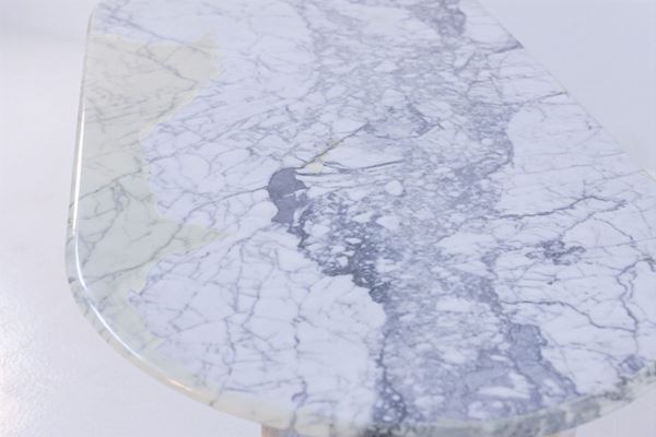 Table in precious marble with oval top. 1960s-1970s. Original condition. Stains on the floor.