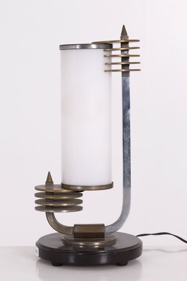 Table lamp in glass and brass