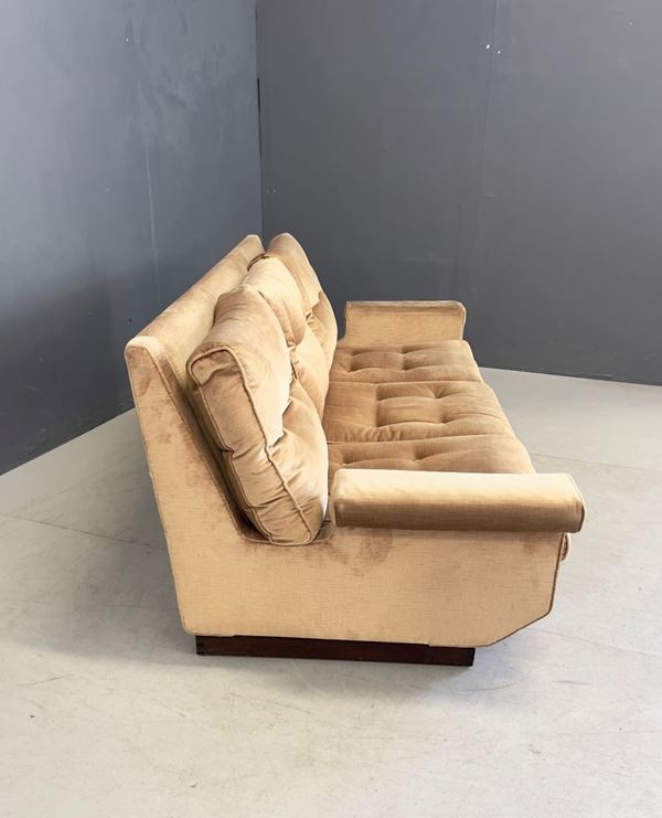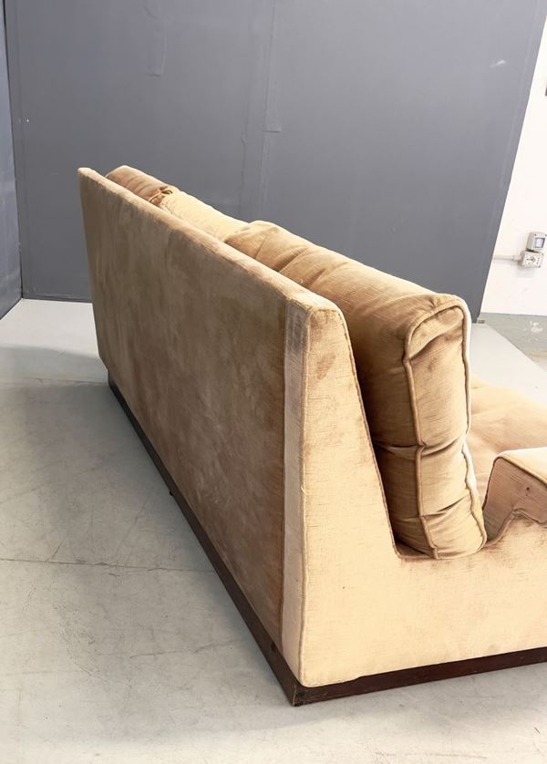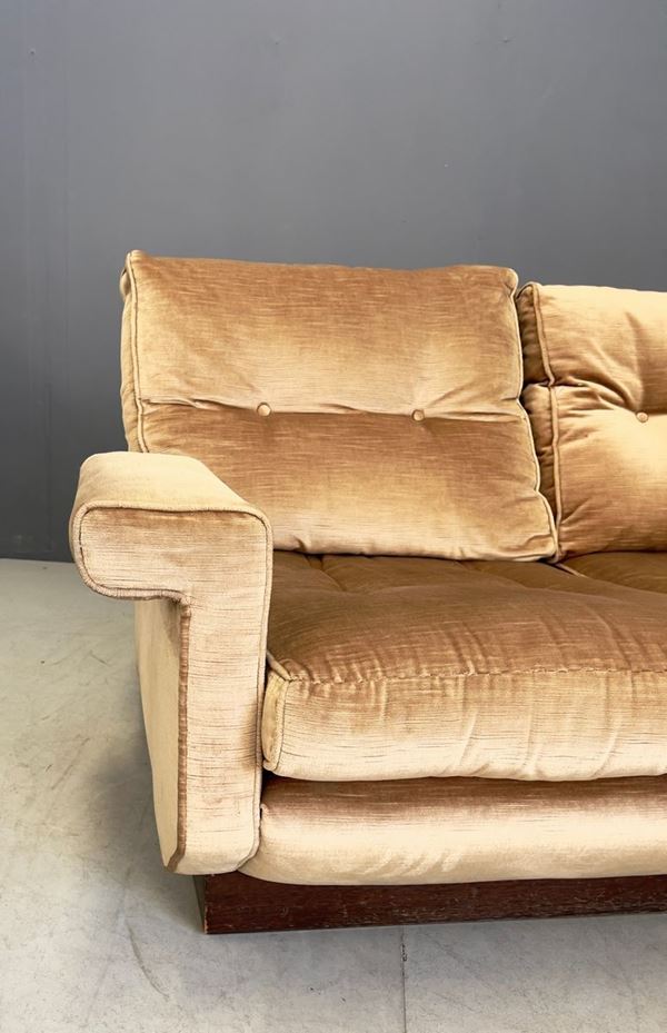 Three seater sofa in wood and velvet. 60's. Defects and signs of wear.Seat height cm. 38 approx. Seat height cm. 38 approx.