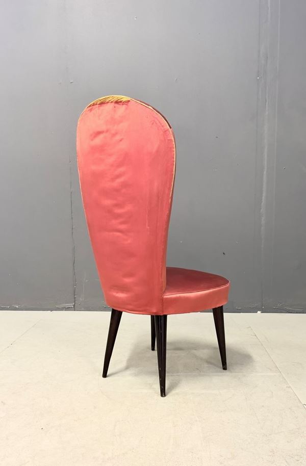 Two armchairs in lacquered wood and fabric. Italian manufacture. 1950s. Defects