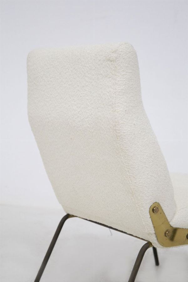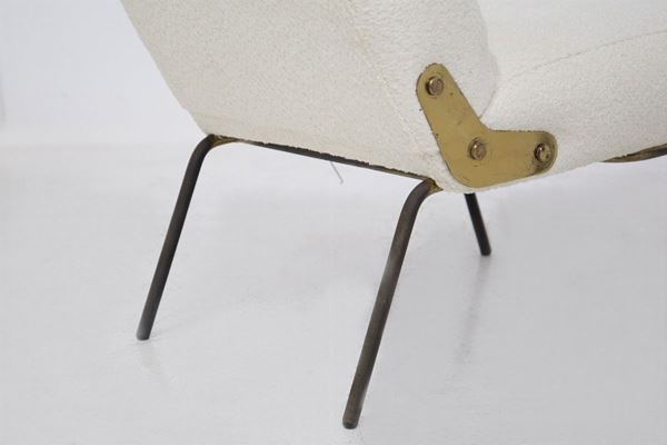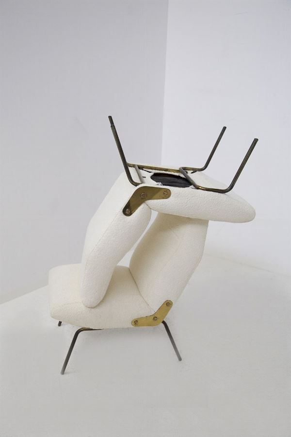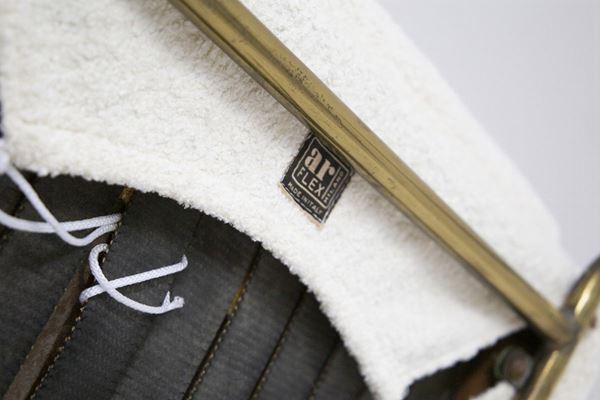 Two armchairs in brass, iron and white fabric. ARFLEX production. & Nbsp; 1950s. With manufacturer's label. Original condition.