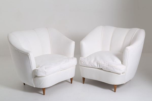 Two armchairs in wood and fabric. CASA E GIARDINO production. '40s.