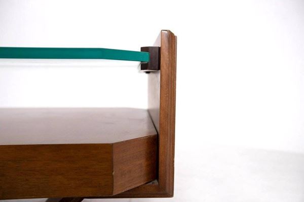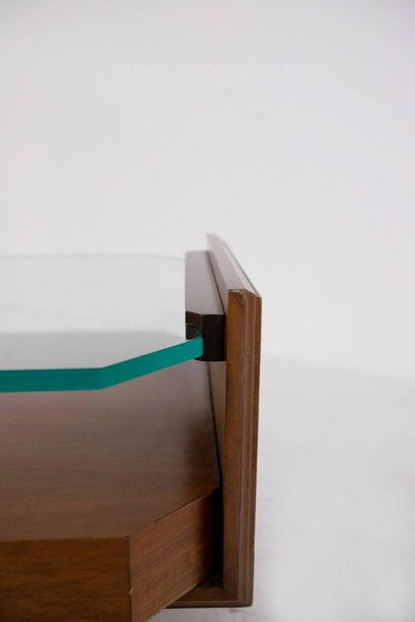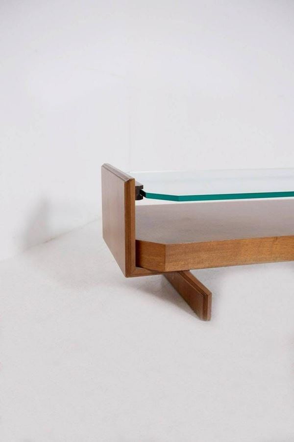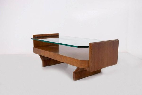 Coffee-table in wood with glass top. 60's. First patina.