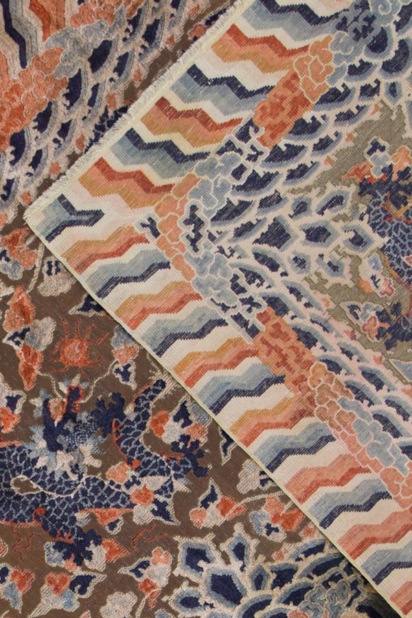 * Importante tappeto Pekino in seta e fili di rame argentati