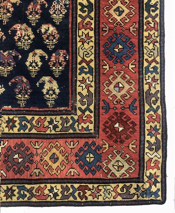 Tappeto Ghendje a Botteh in lana. Caucaso. Fine XIX secolo. Buono stato di conservazione.