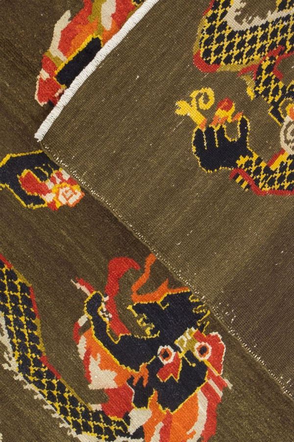 * Tappeto Khaden in lana. Tibet. Inizi XX secolo. Perfetto stato di conservazione.