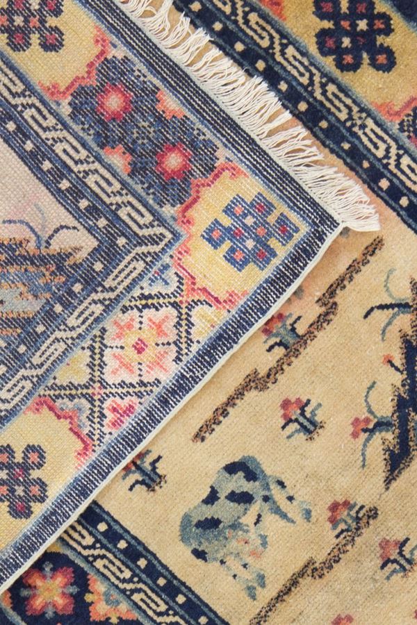 Tappeto Suiyan in lana. Tibet. Inizi XX secolo. Ex collezione The Te-Chun Wang. Ottimo stato di conservazione. Da smacchiare.