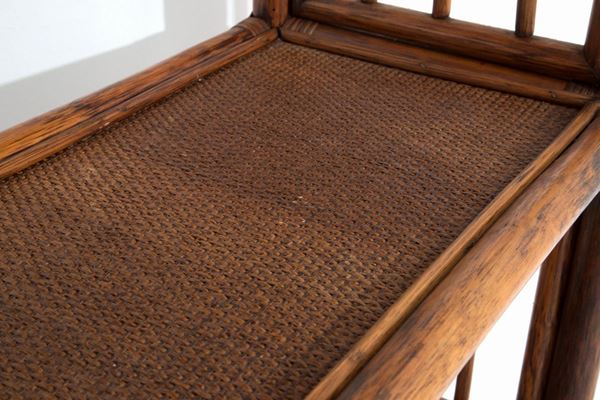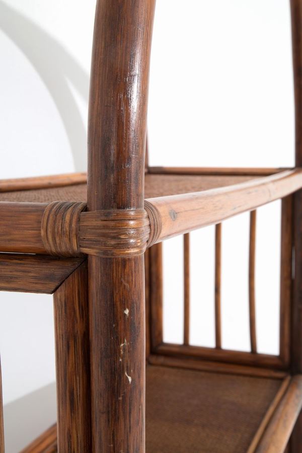 Arch-shaped bamboo bookcase with four shelves. Italian manufacture. 70's.