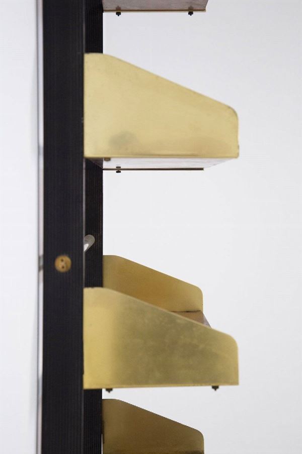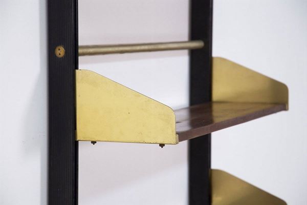 Bookcase in wood and brass with adjustable shelves that can be positioned as desired. FEAL production. 1950s.