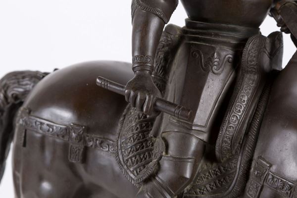 Patinated bronze sculpture raff. '' BARTOLOMEO COLLEONI ''. Late 19th century.