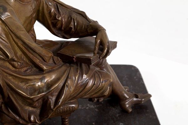 Bronze sculpture raff. ''RAFFAELLO''. Signed on the edge of the stool.