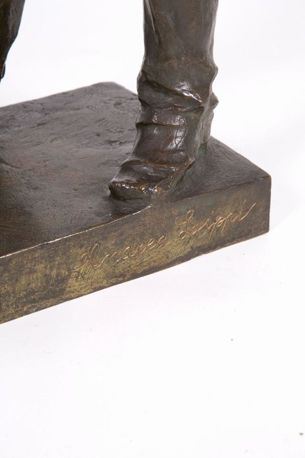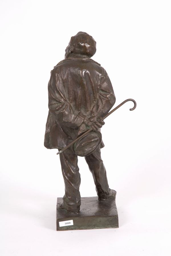 Bronze sculpture raff. '' HUNCHBACK CHARACTER WITH STICK AND HAT. Signed at the base.