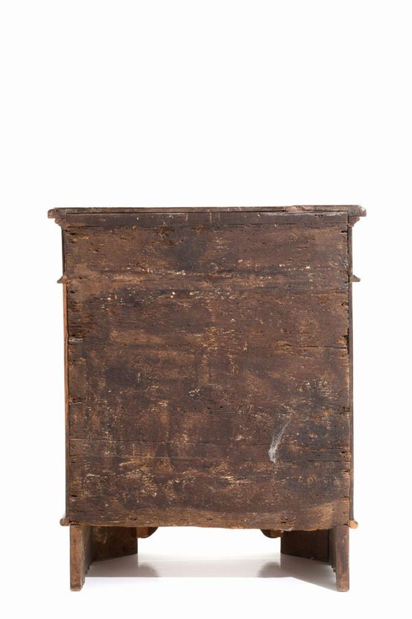 Fluted walnut cabinet with light wood inlays. 17th century. Defects and restorations.