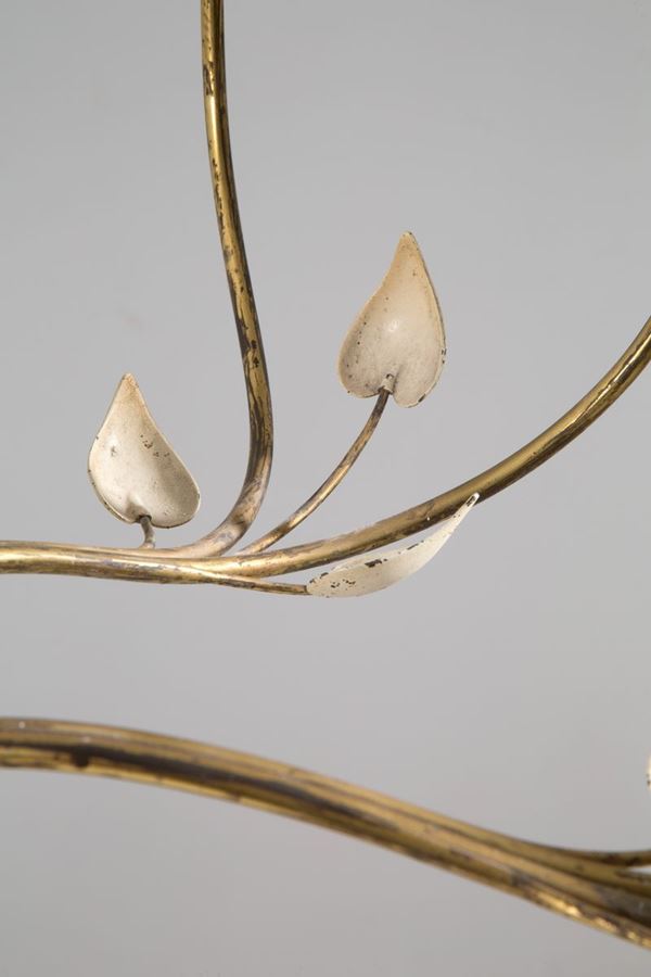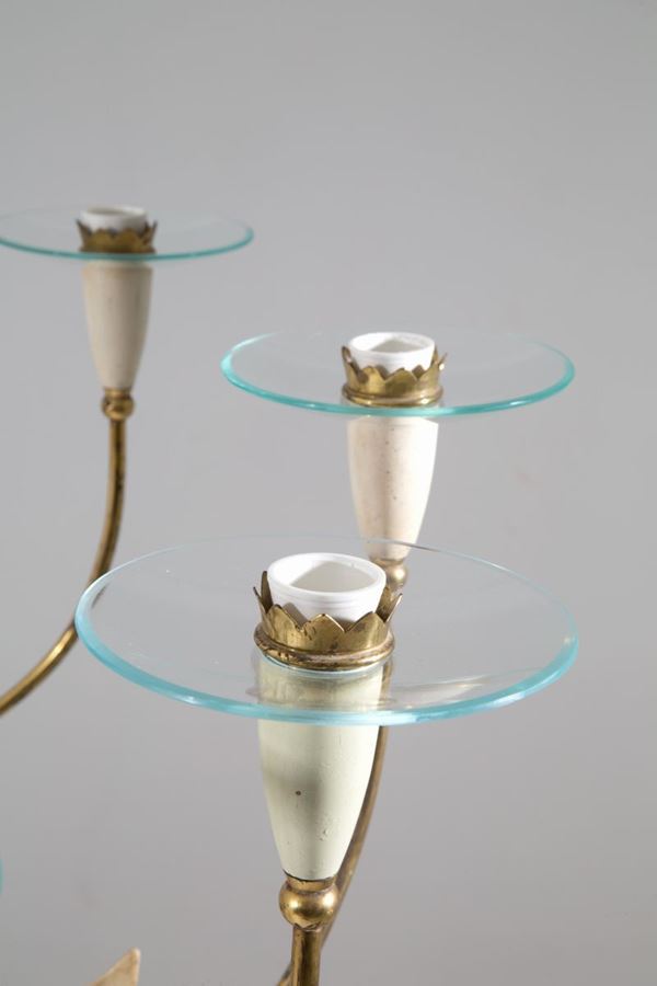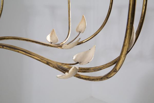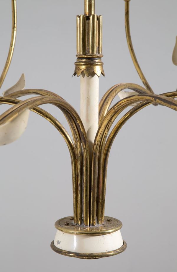 Twelve lights chandelier in painted brass with glass bobeche. 40s.