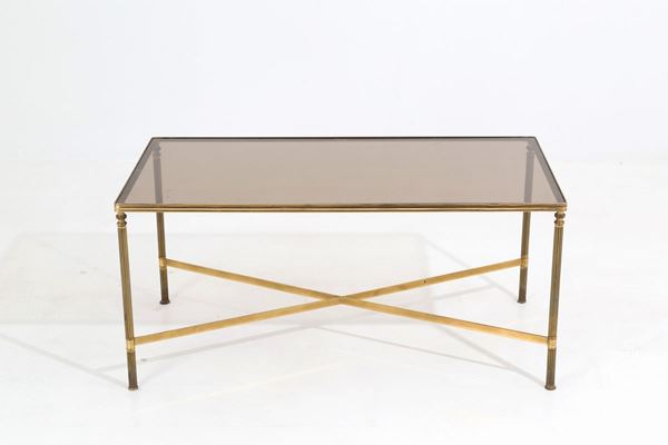 Coffee table in brass and rectangular glass. Italian manufacture. 70's.