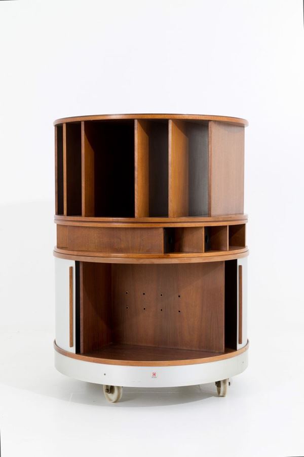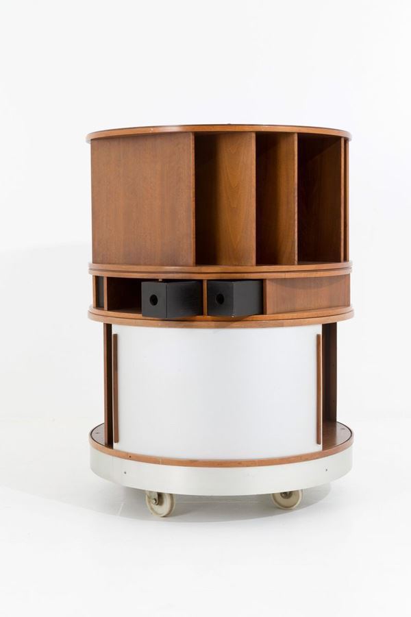Combi Center model bar cabinet in wood and brushed aluminum. BERNINI production. 60's.