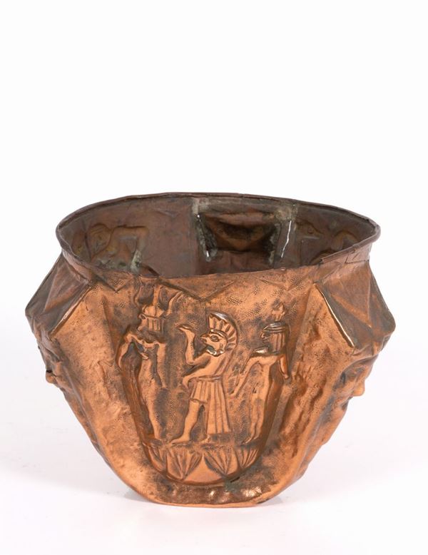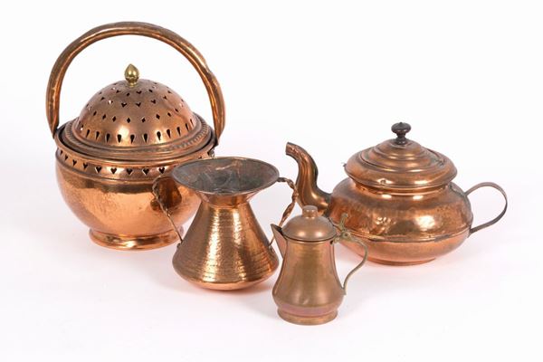 Copper lot consisting of: four pourers, an umbrella stand, a vase holder, a teapot, a briquette, two miscellaneous.