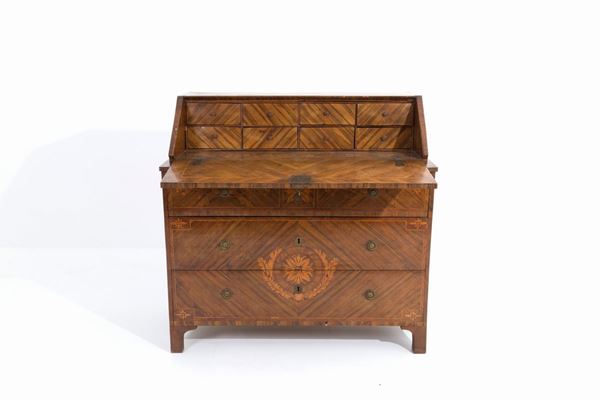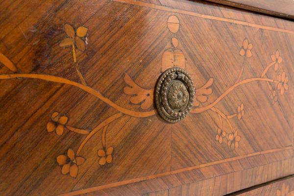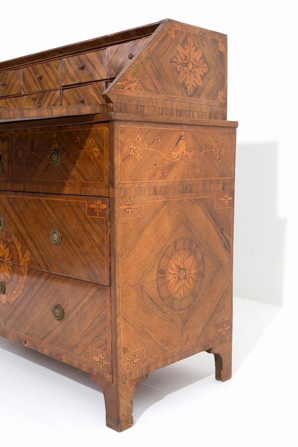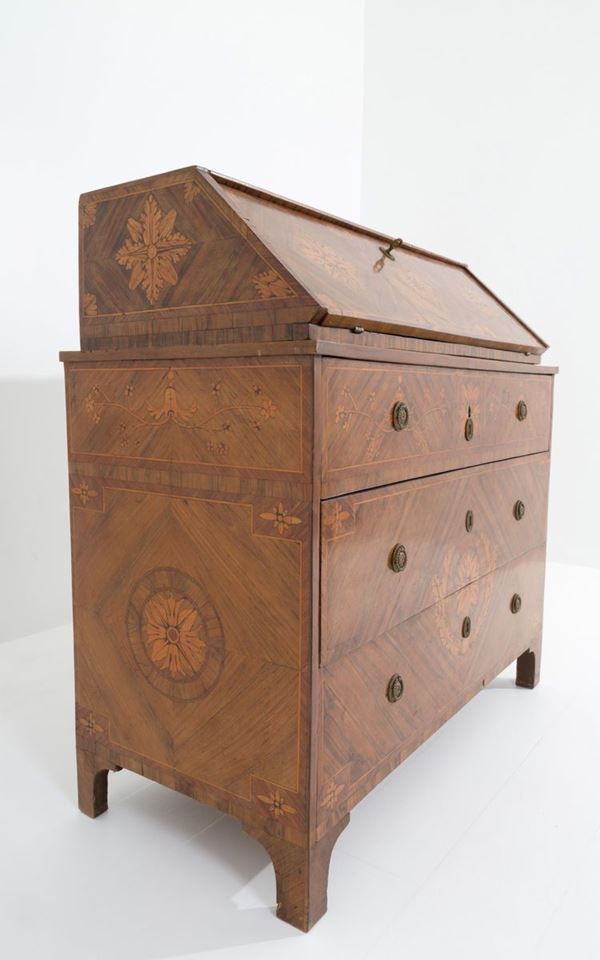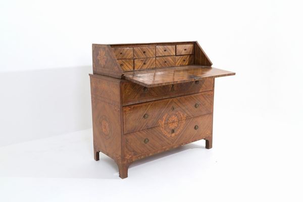Drop-leaf cabinet in veneered wood and inlaid with floral motifs. Lombardy. Late 17th century. Slight flaws.